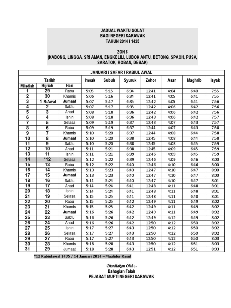 Jadual Waktu Solat Bagi Negeri Sarawak Tahun Pdf